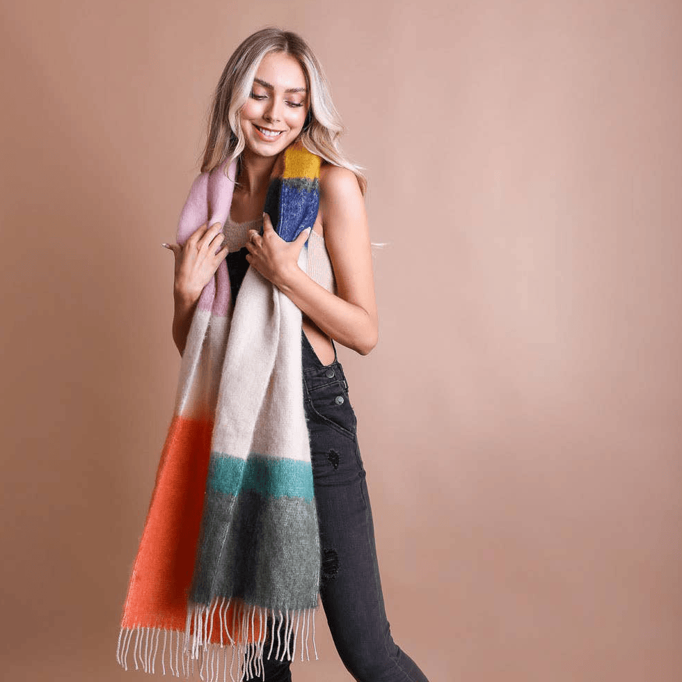 Don't sleep on these colorful, cozy scarves (even though you totally could because OMG they're like a soft blanket).